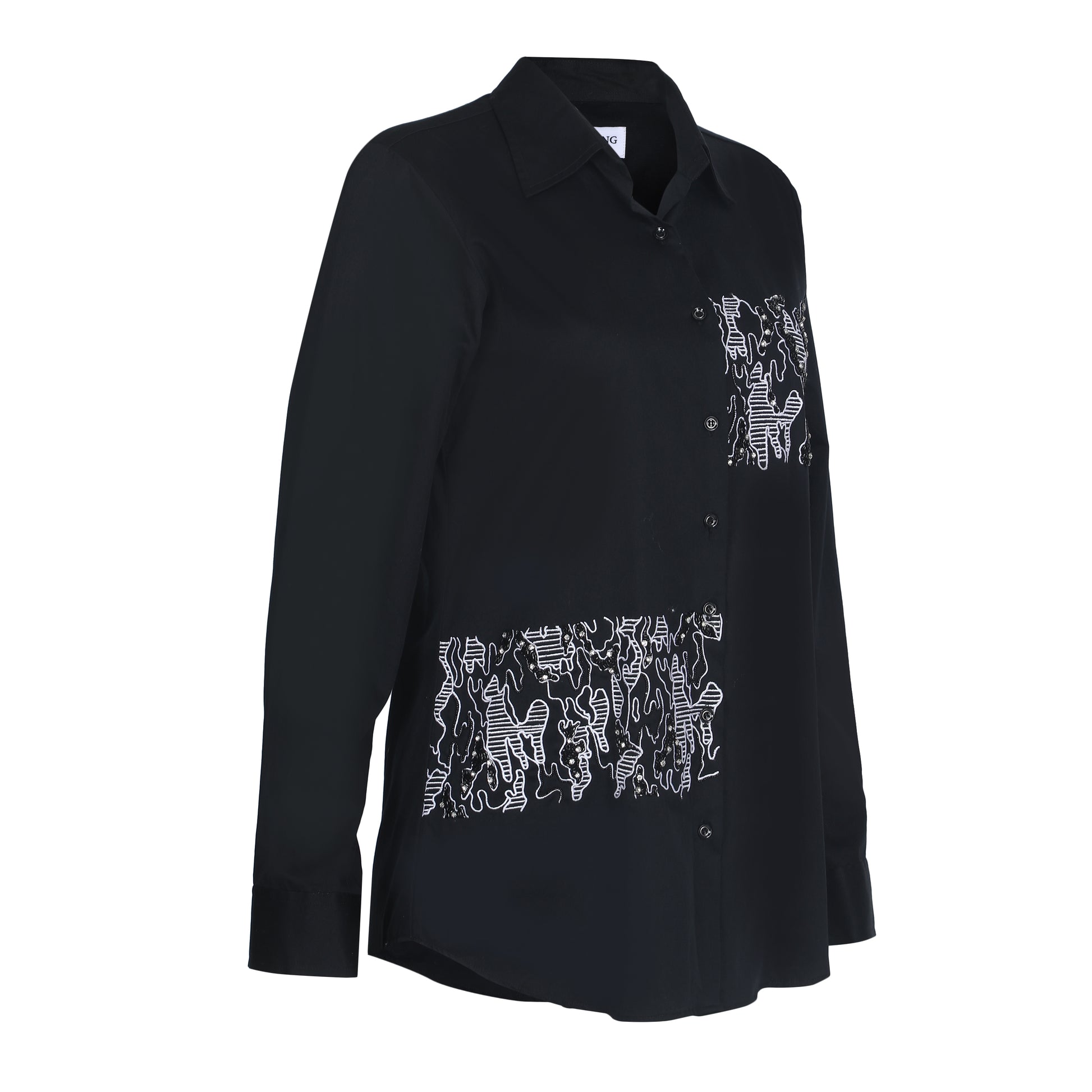 Add a touch of timeless elegance to your wardrobe with our Black Shirt with Resham Thread Embroidery, a perfect blend of classic style and delicate craftsmanship. The soft, black fabric serves as the ideal backdrop for the intricate resham thread embroidery, which adds an elegant. The resham embroidery features fine detailing that enhances the shirt’s sleek silhouette, making it suitable for both casual and semi-formal occasions. Whether paired with jeans, trousers, or skirts, this shirt brings sophistication and charm to any outfit. Material: Soft, breathable fabric for all-day comfort. Design Details: Intricate resham thread embroidery, creating a refined and artistic touch. Fit: Relaxed yet tailored for a flattering and comfortable fit. Occasion: Ideal for casual outings, office wear, or evening gatherings. Style Tip: Pair with simple accessories or bold jewelry to create a chic, balanced look.