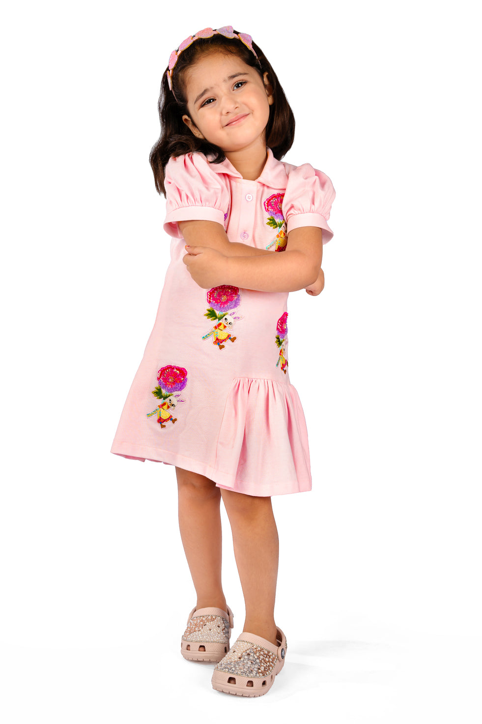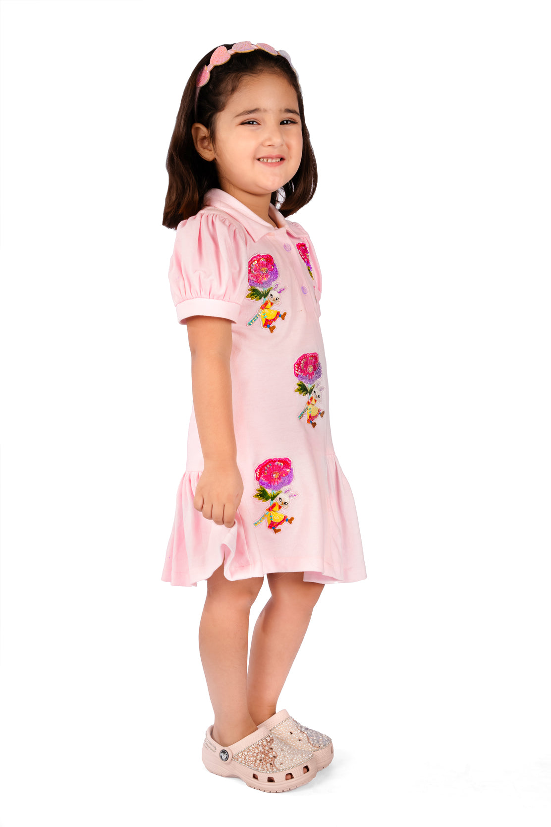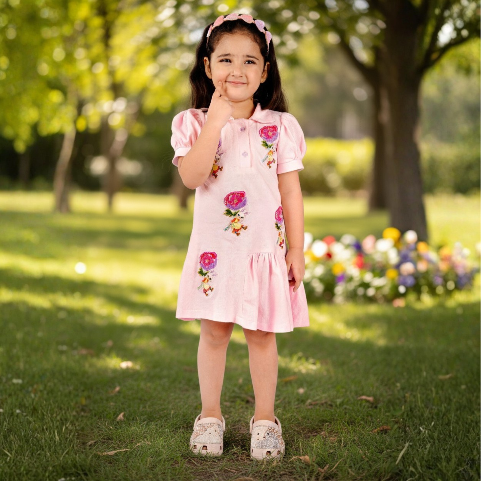 A graceful spin on sporty chic — this polo dress features delicate rose patchwork artfully placed across the bodice for a touch of romantic flair. With a crisp collar, subtle button placket, and softly tailored shape, it blends structure and softness. Made from a breathable cotton blend, it’s ideal for both day-to-day wear and special casual occasions.