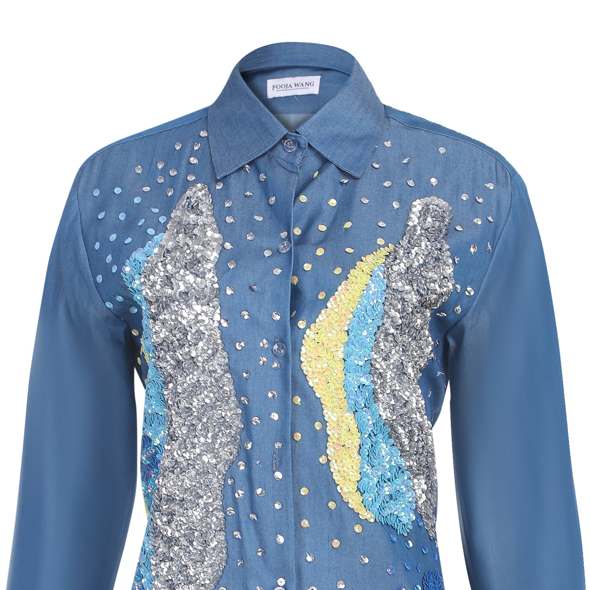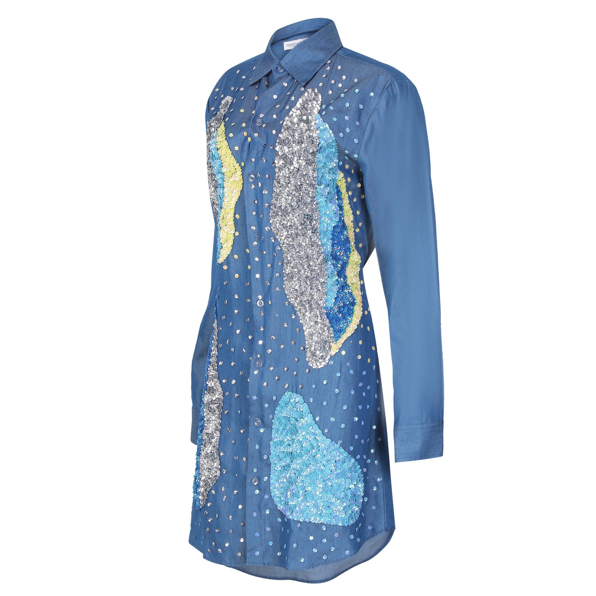 Make a statement with our Denim Shirt Dress, where classic denim meets a touch of glamour. Designed for women who love effortless style with a hint of sparkle, this dress features exquisite sequin work, adding a modern and chic twist to a timeless silhouette. Key Highlights: 1. Premium Denim Fabric – Soft, breathable, and ultra-comfortable for all-day wear. 2. Dazzling Sequin Embellishments – Adds a touch of glamour while keeping it effortlessly stylish. 3. Classic Shirt Dress Silhouette – Relaxed yet structured for a flattering fit. 4. Versatile Styling – Perfect for casual outings, brunch dates, or an elevated street-style look. 5. Effortless Elegance – A fusion of comfort and sophistication, making it a wardrobe essential.