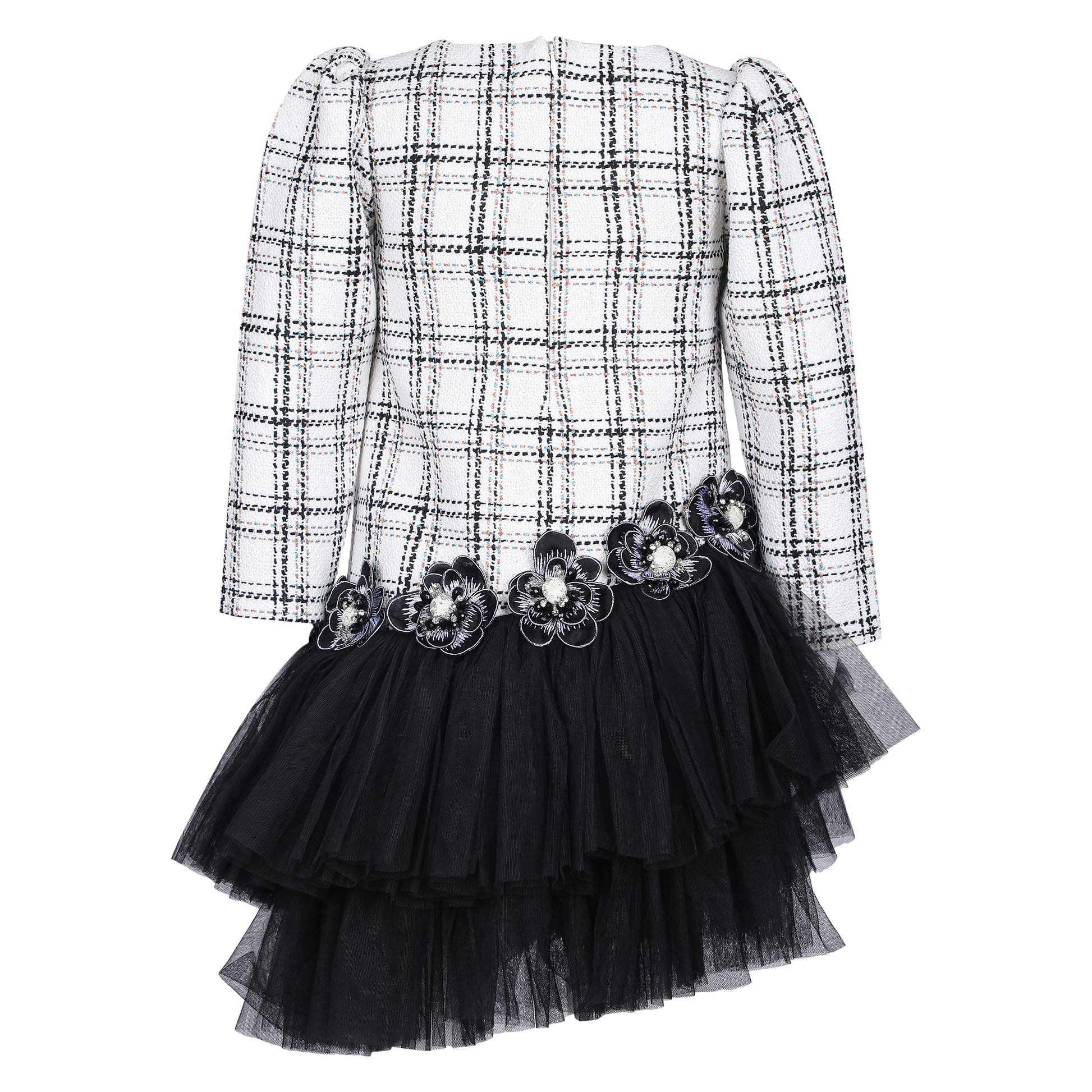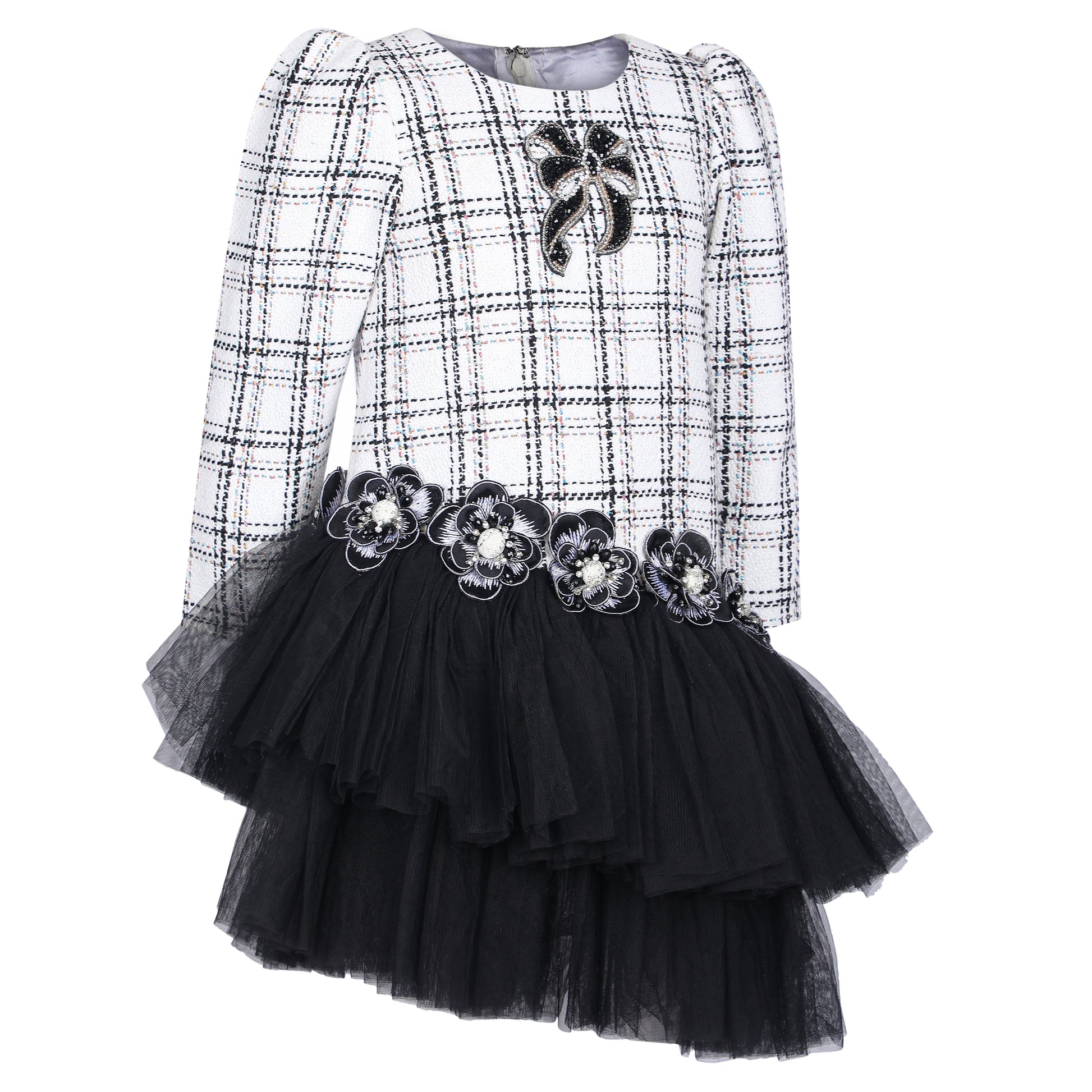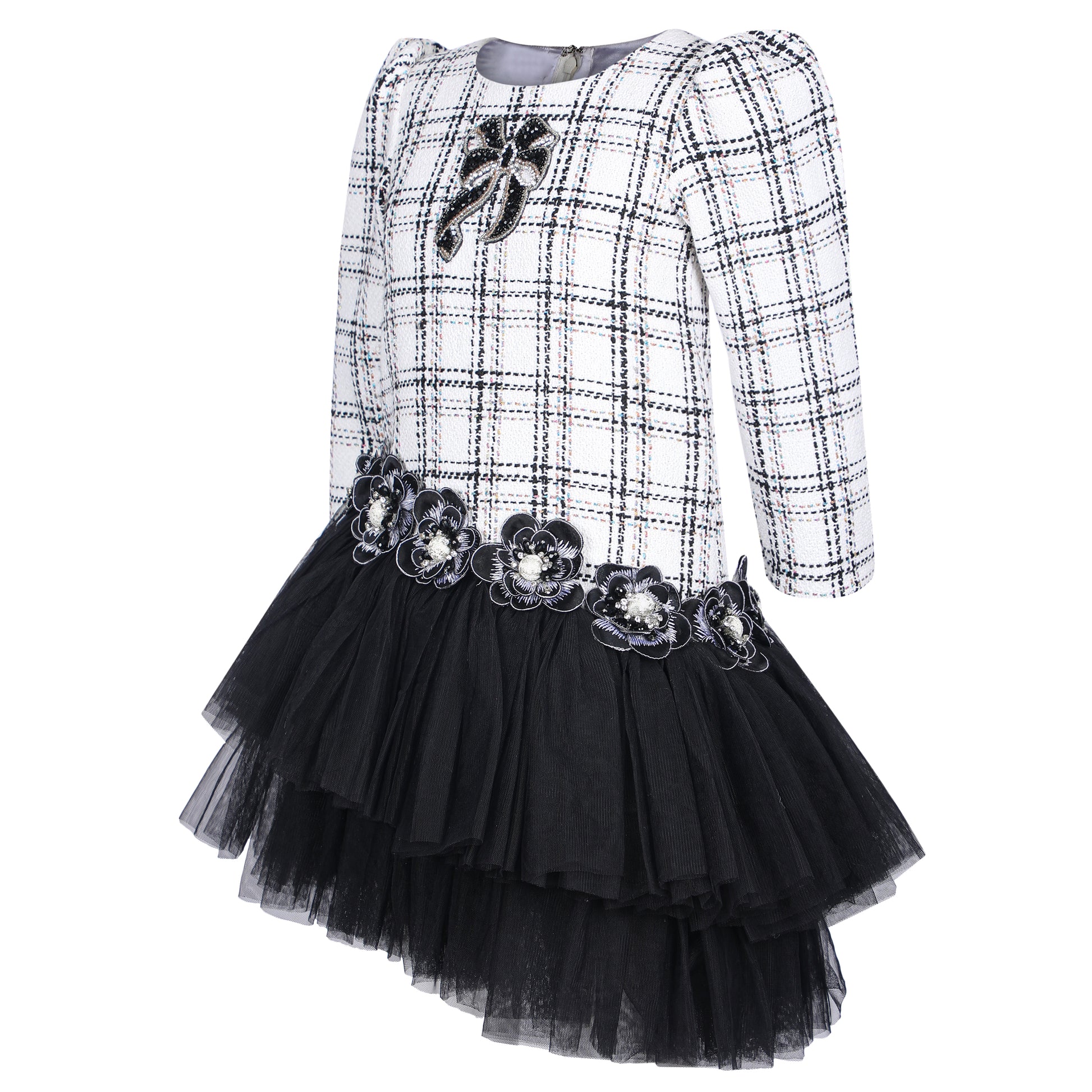 Classic meets contemporary in this elegant Tweed Dress, crafted from textured tweed fabric that radiates sophistication. The structured silhouette is beautifully balanced with a soft net frill at the bottom, adding a playful twist to its timeless charm. Designed for comfort and style, this dress is perfect for celebrations, gatherings, and special occasions where elegance with a hint of fun is all that’s needed.
