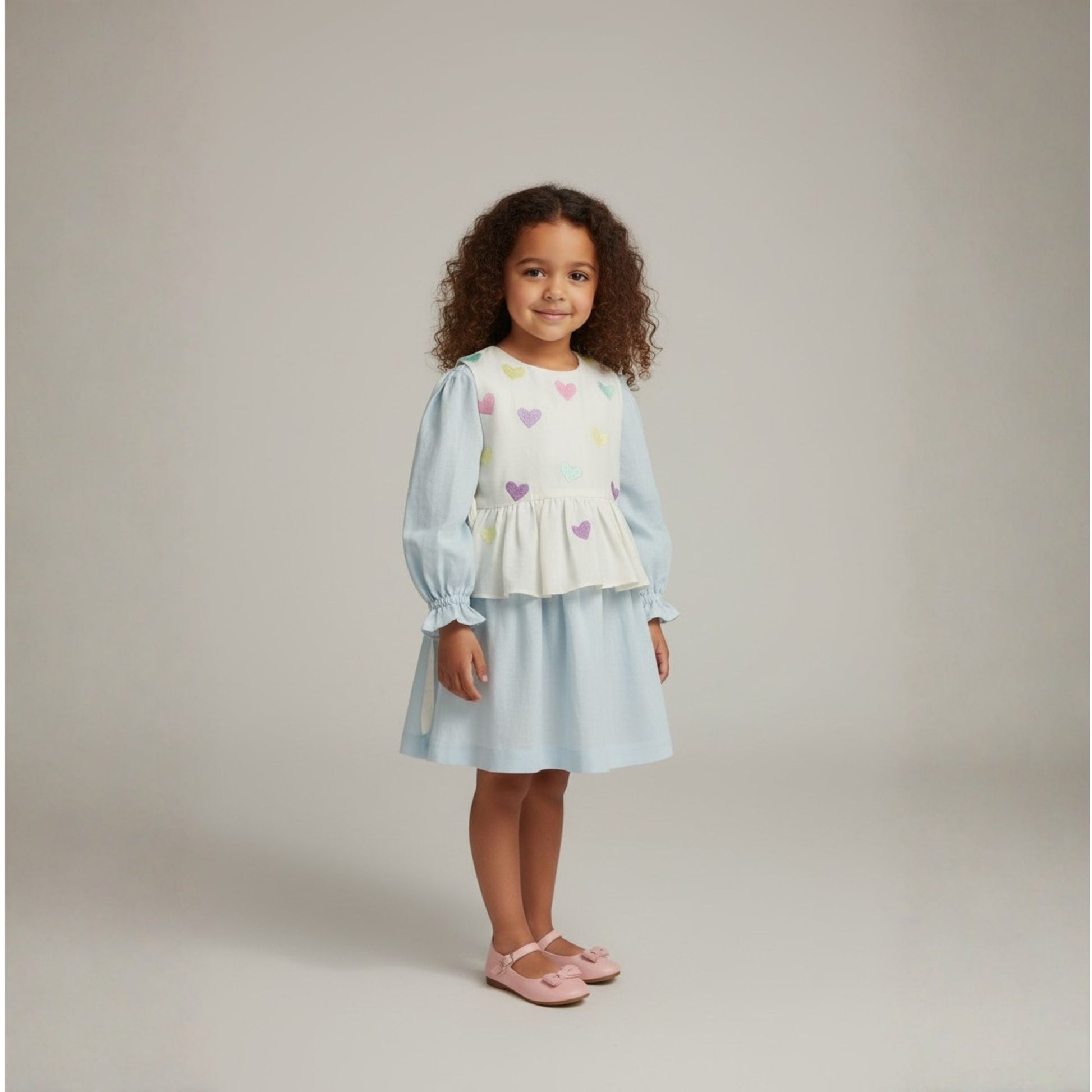 girls cotton linen two-piece set, girls embroidered jacket dress set, hand-painted heart jacket girls, linen dress with jacket girls, girls thread embroidery heart dress, multi-colour heart kids set, girls peplum jacket dress, toddler cotton linen outfit, girls artisan handcrafted dress set, girls boutique two-piece, cream and blue girls jacket dress, girls ribbon tie dress, scattered heart embroidery kids, girls spring occasion dress, girls puff sleeve linen dress, kids handmade thread work dress, girls Easter dress set, toddler linen jacket outfit, girls knee length dress with jacket, Pooja kids collection cotton linen, girls party dress set, unique girls embroidered set, pastel heart girls outfit, girls special occasion two-piece