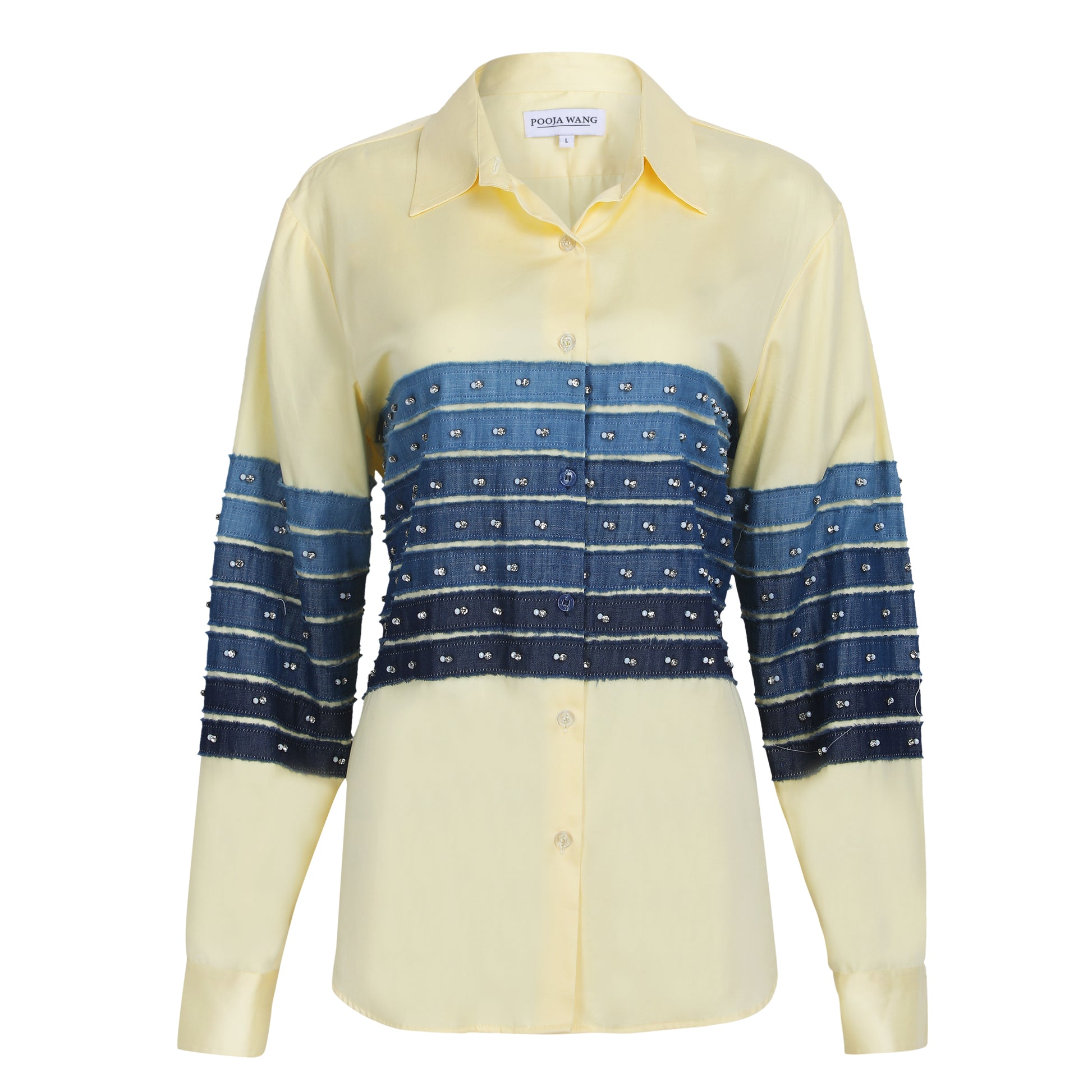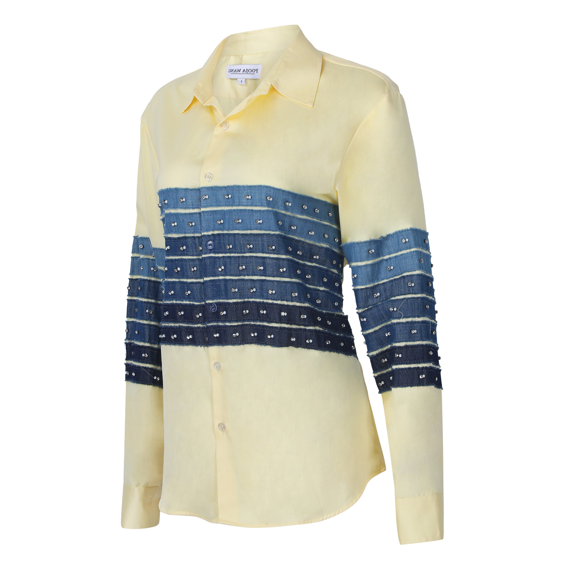 Add a fresh and stylish touch to your wardrobe with our Lemon Shirt featuring Denim Lines & Crystal Work. A perfect fusion of casual charm and subtle sparkle, this piece is designed for effortless elegance. Features: 1. Soft & Breathable Fabric – Ensures all-day comfort and a relaxed fit. 2. Unique Denim Line Detailing – Adds a trendy and structured touch. 3. Delicate Crystal Embellishments – A hint of sparkle for understated glam. 4. Vibrant Lemon Hue – Fresh and uplifting, perfect for any season. 5. Versatile Styling – Ideal for casual outings, brunches, or a statement look.