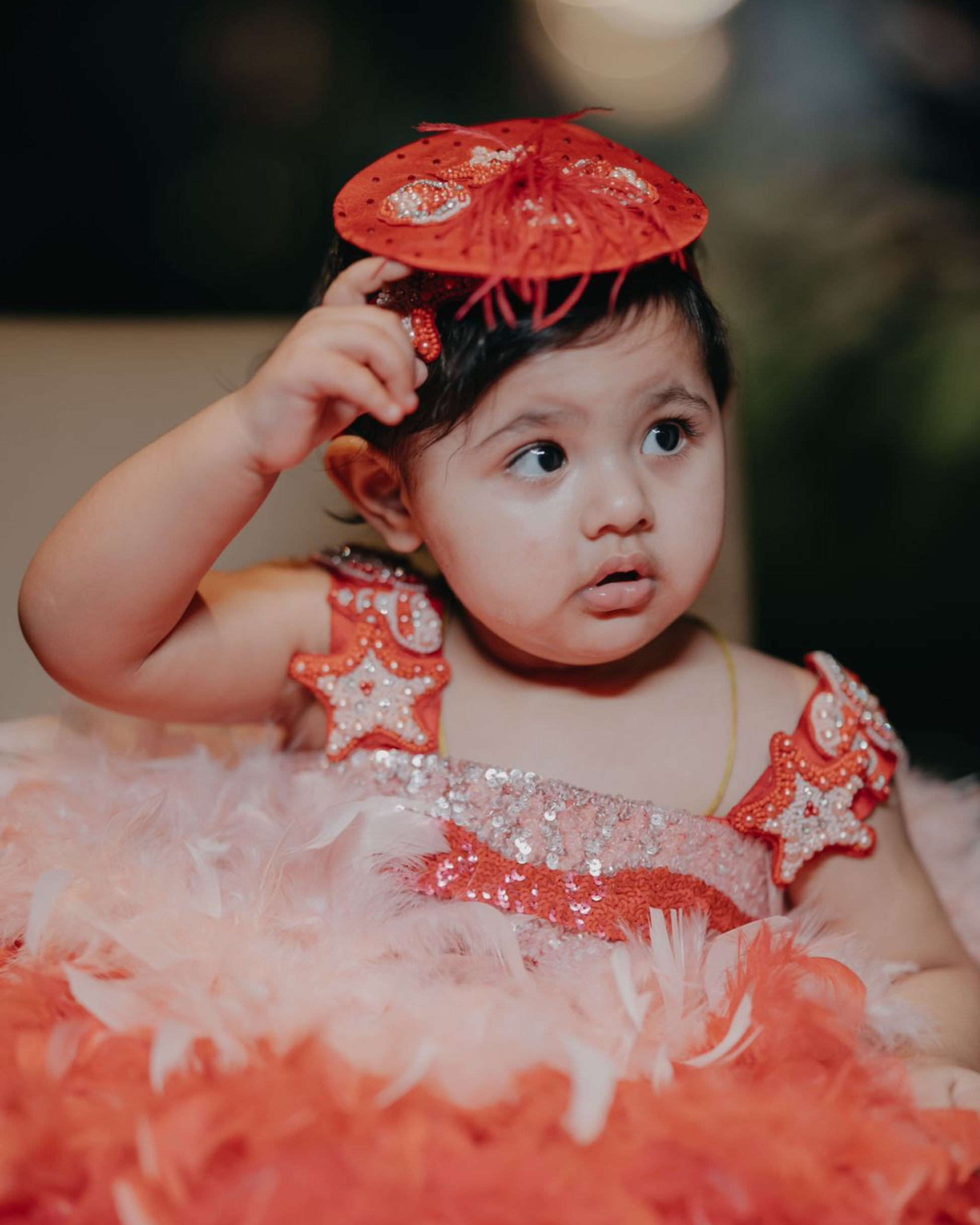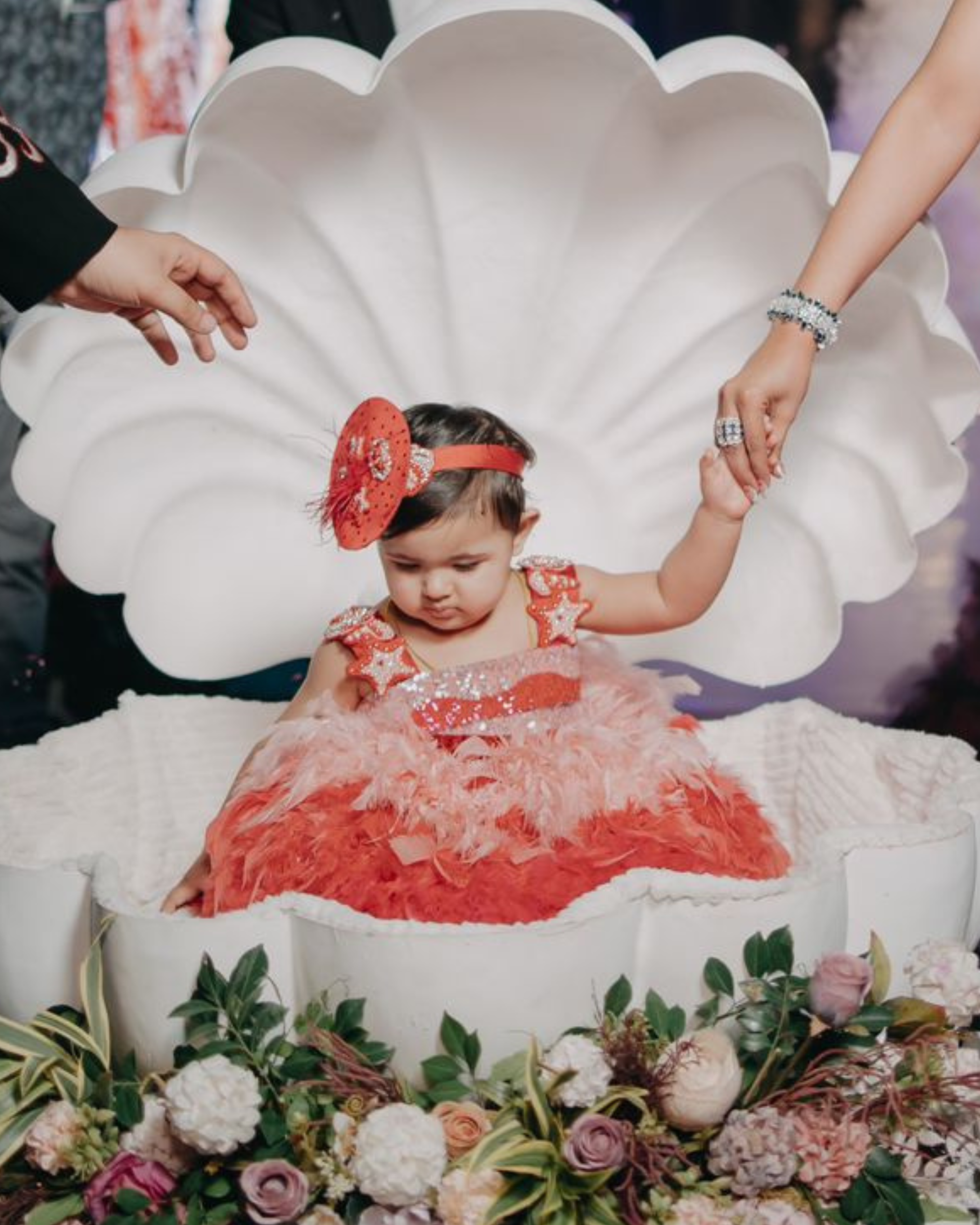 Make her sparkle like the ocean’s magic in this enchanting Mermaid Dress. Featuring a fully sequin-embellished bodice adorned with starfish and shell motifs highlighted with intricate pearl and crystal work, the look is finished with a soft feathered bottom for a dreamy, couture touch—perfect for birthdays and special celebrations. Key Features: • Fully sequin-worked bodice for high-shine elegance • Starfish & shell motifs detailed with pearls and crystals • Luxurious feathered bottom for a statement finish • Lightweight, comfortable design for kids • Ideal for birthdays, photoshoots & festive occasions