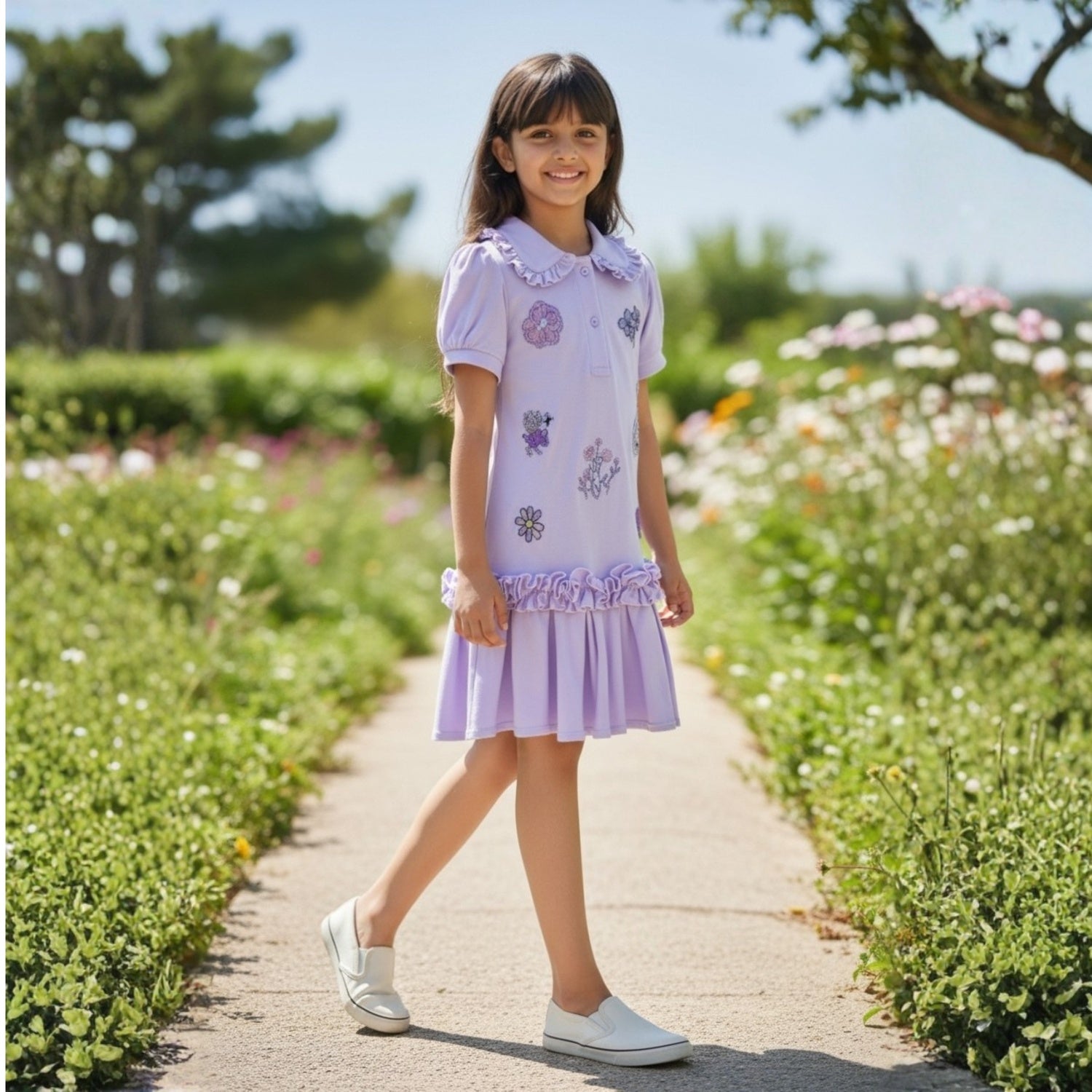 Sweet and stylish, this Lilac Polo Dress combines comfort with charming details. Crafted from soft, premium fabric, it features delicate embroidered motifs that add a subtle touch of elegance. Perfect for casual outings or special occasions, this dress offers a graceful silhouette while letting your little one shine in effortless style.
