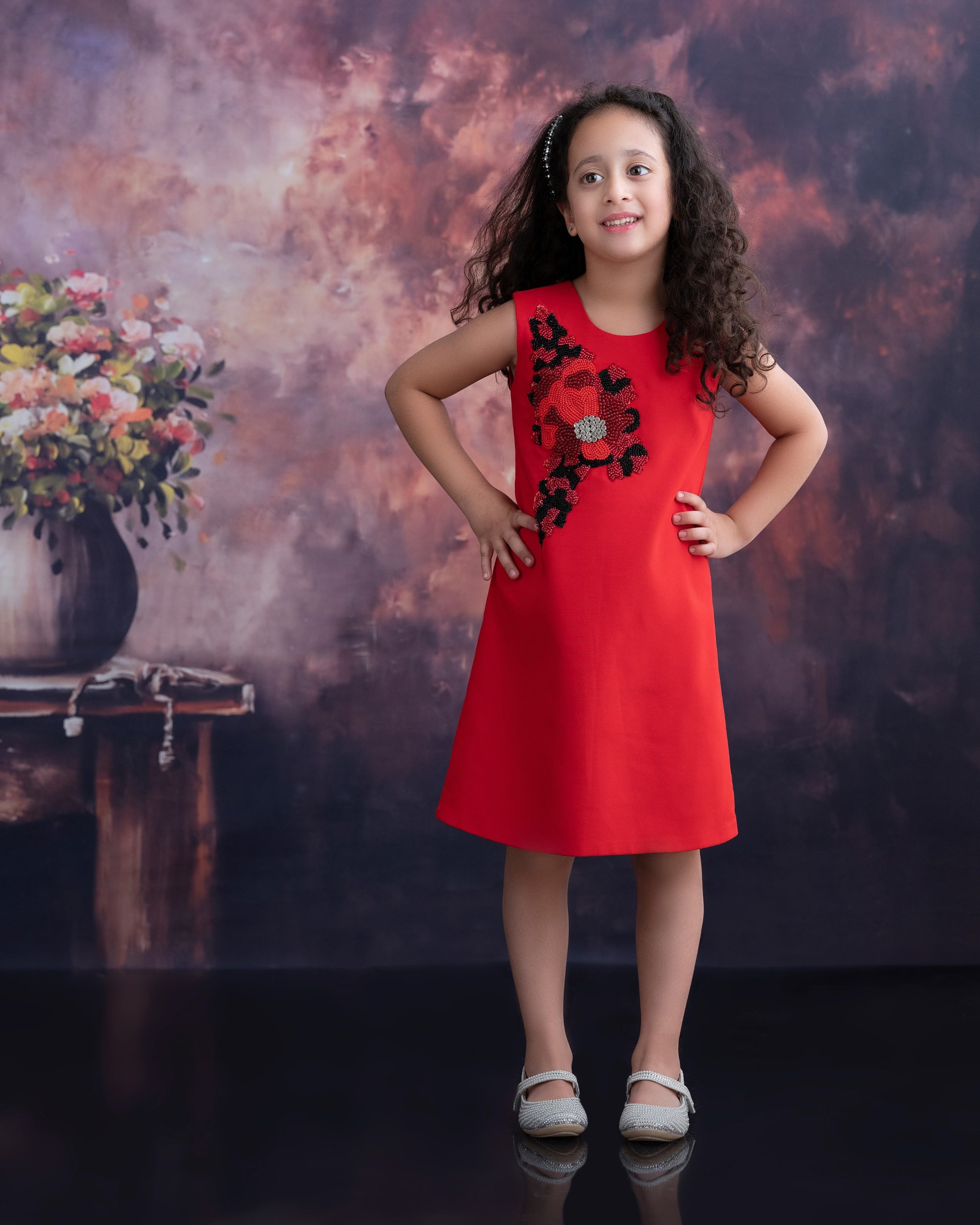 This stylish straight-fit kids’ dress features shimmering sequin work across the design, creating a chic and elegant look. Lightweight and comfortable, it’s perfect for parties, birthdays, and festive occasions.