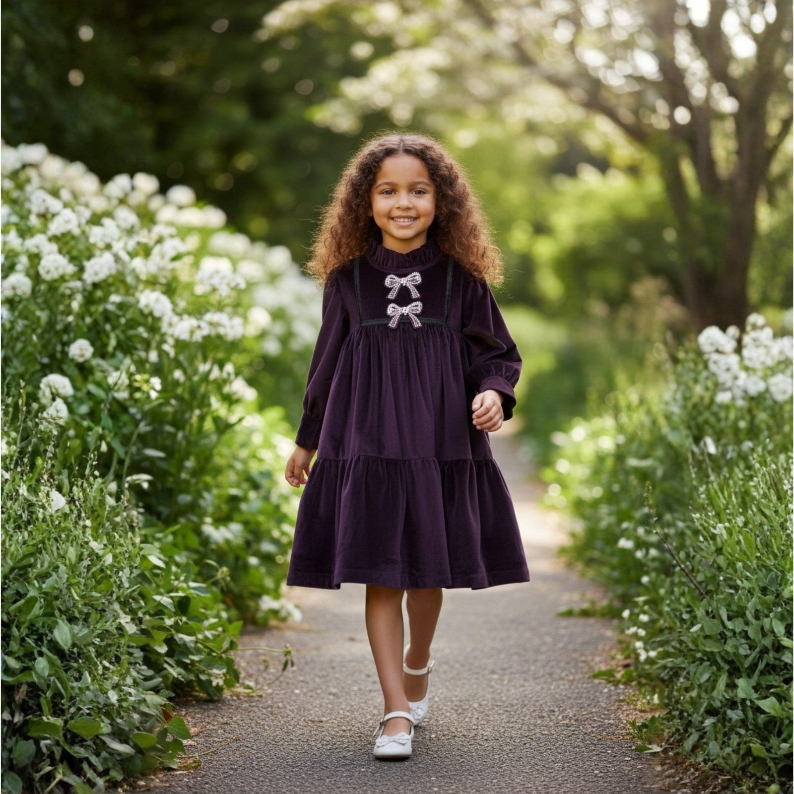 This dress exudes timeless elegance, while the crystal bow embroidery adds a touch of sparkle and charm. The beautifully detailed bow shimmers gracefully, making this dress a perfect choice for special occasions. Soft, comfortable, and effortlessly stylish, it's a statement piece for celebrations and unforgettable moments. Key Features: ✔ Premium Velvet Fabric – Soft, rich, and regal for a sophisticated look. ✔ Crystal Bow Embroidery – A dazzling, handcrafted detail for added glamour. ✔ Elegant & Timeless Design – A perfect blend of luxury and charm. ✔ Comfortable Fit – Designed for ease of movement and all-day wear. ✔ Perfect for Special Occasions – Ideal for birthdays, festive gatherings, and grand celebrations. A dress that captures grace, sparkle, and luxury—perfect for your little star!