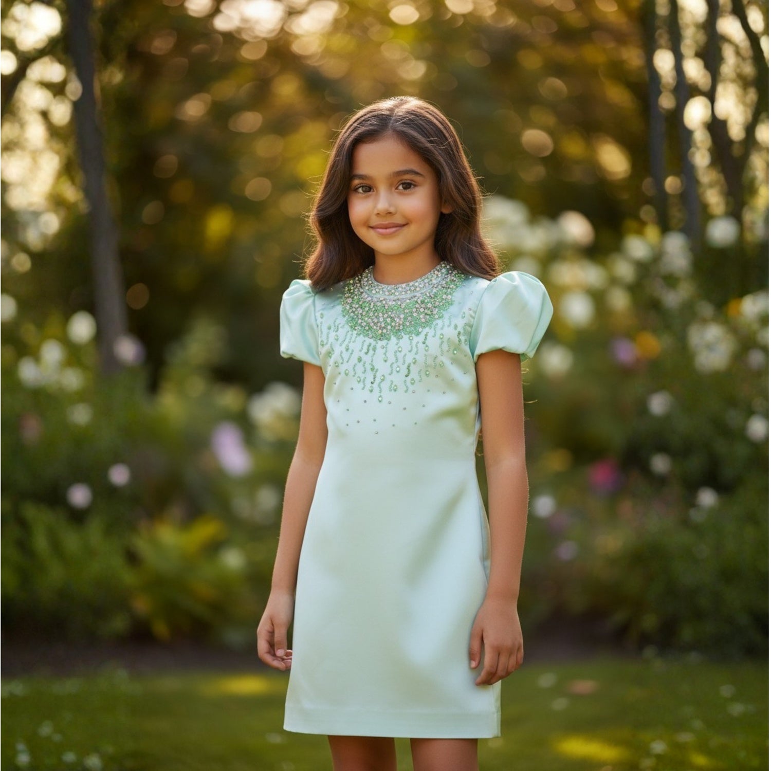 Elegance meets sophistication in our Dutch Satin Dress with Bead Work, designed to make every little girl shine. The smooth, lustrous fabric paired with intricate bead embellishments creates a dreamy, timeless look perfect for special occasions. Key Features: 1. Delicate Bead Embellishments – Handcrafted details add a refined sparkle. 2. Lustrous Dutch Satin Fabric – Rich, smooth, and effortlessly elegant. 3. Graceful & Comfortable Fit – Designed for ease of movement with a flowy silhouette. 4. Subtle Yet Stunning Shine – Perfect for making a statement with understated glamour. 5. Ideal for Special Moments – Perfect for birthdays, celebrations, and festive occasions.