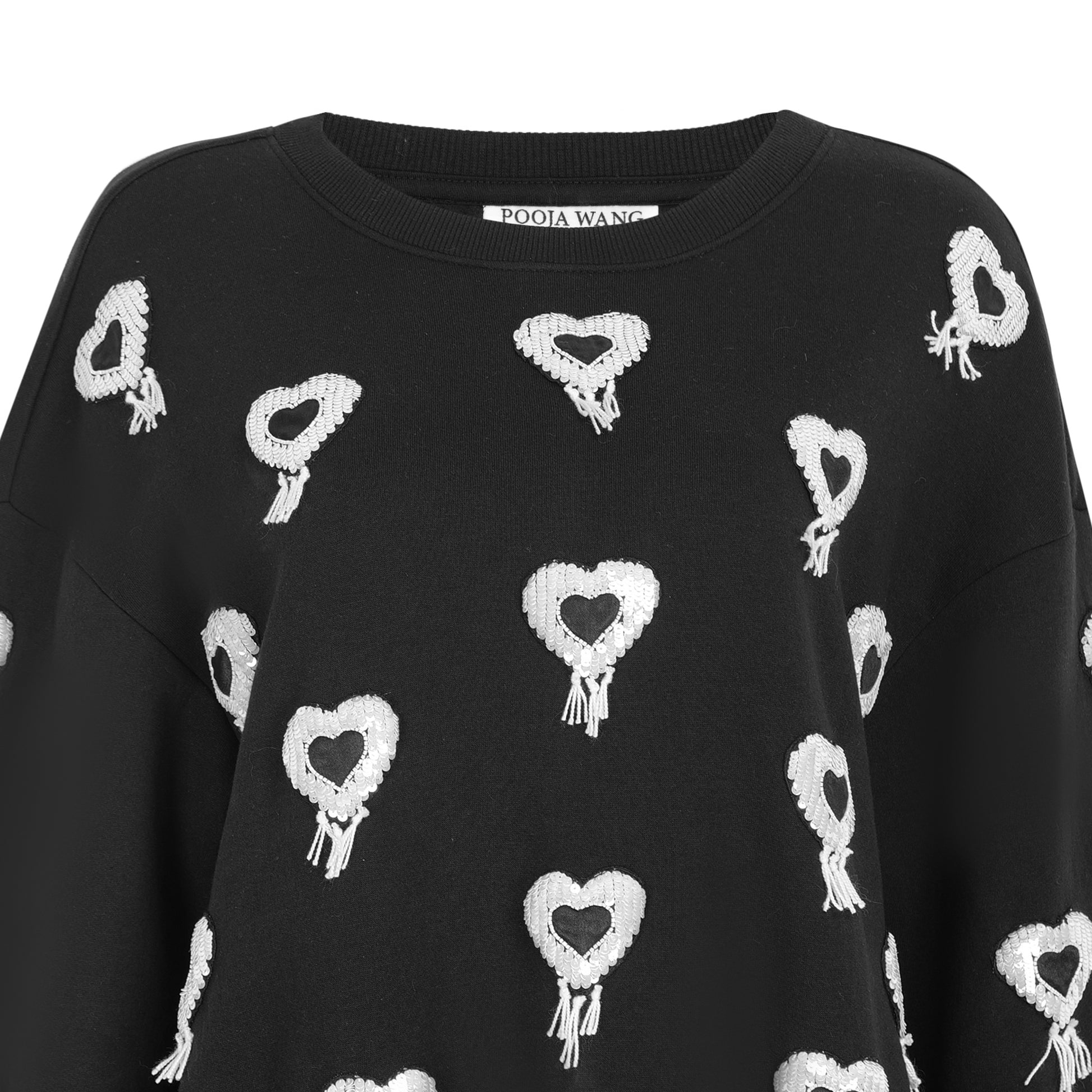 Add a touch of glamour to your casual wardrobe with our Black Sweatshirt with Thread & Sequin Heart. Designed for modern women, this cozy yet stylish piece features intricate thread embroidery and shimmering sequins, making it perfect for effortless fashion. Key Features: 1. Classic Black Hue – A timeless and versatile staple for any wardrobe. 2. Thread & Sequin Heart Detailing – A delicate mix of texture and sparkle. 3. Soft & Comfortable Fabric – Ensures warmth and ease for all-day wear. 4. Relaxed Yet Stylish Fit – Perfect for layering or wearing on its own. 5.Ideal for Casual & Trendy Looks – Great for outings, coffee dates, and everyday wear.