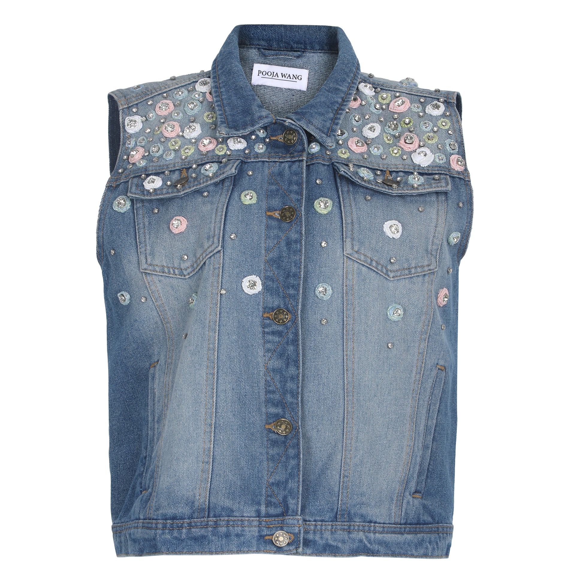 A perfect blend of edgy and elegant, our Sleeveless Denim Jacket is adorned with intricate bead and crystal embellishments, making it a standout piece for any wardrobe. Whether layered over a dress or paired with casual wear, this jacket adds a touch of sparkle to your everyday style. Key Features: 1.Premium Denim Fabric – Durable, stylish, and versatile for all seasons. 2. Handcrafted Bead & Crystal Embellishments – Adds a luxe, glamorous touch. 3. Sleeveless Design – Perfect for layering while keeping it breezy and chic. 4. Versatile Styling – Pairs effortlessly with dresses, co-ords, or casual separates. 5. Perfect for Any Occasion – Ideal for brunches, parties, vacations, or casual glam looks.