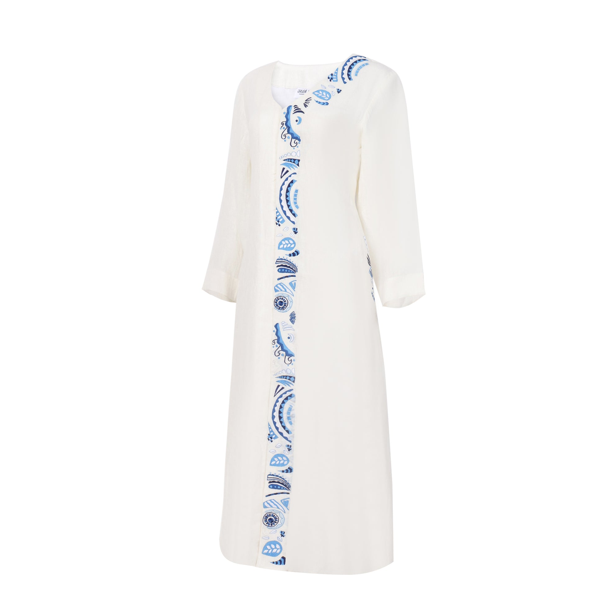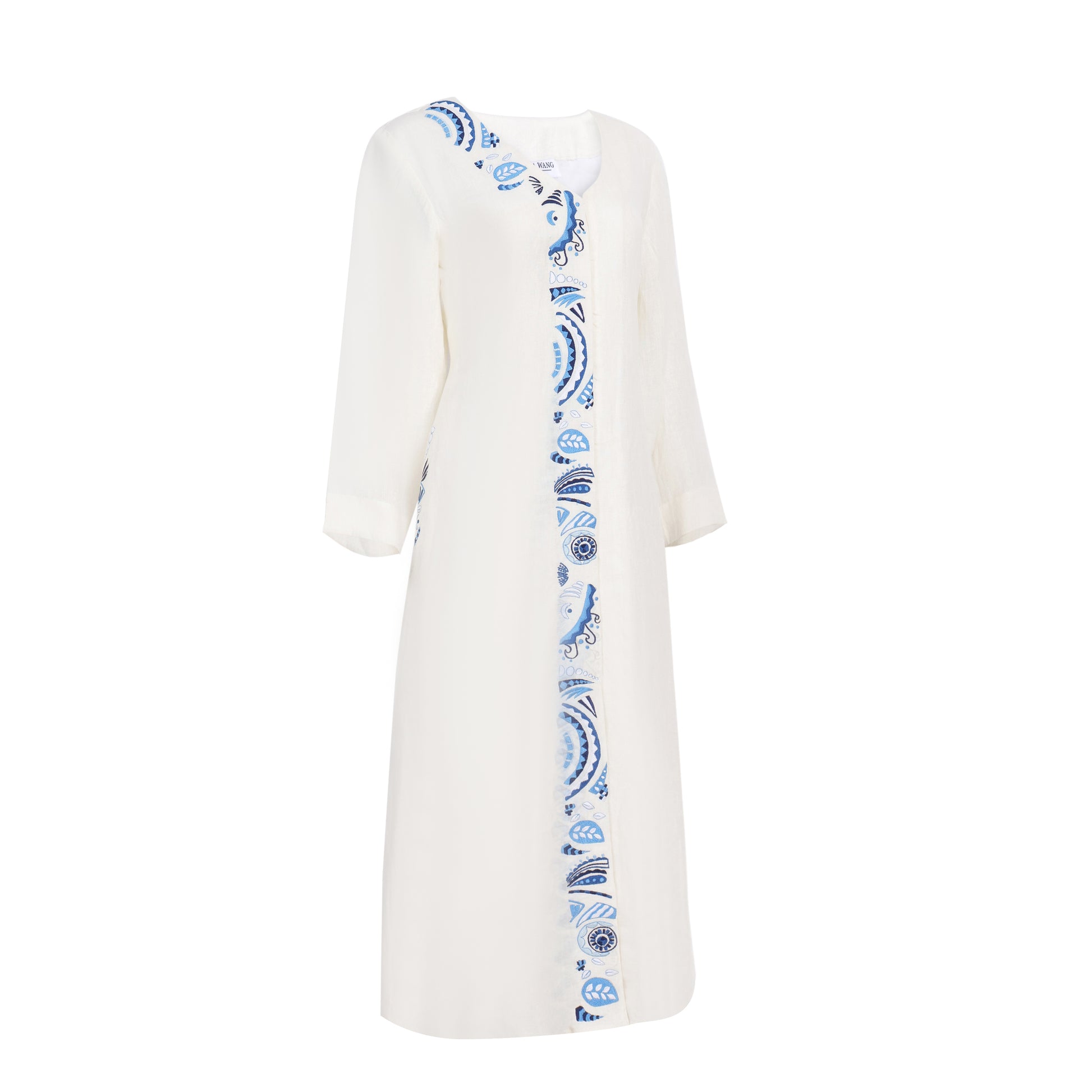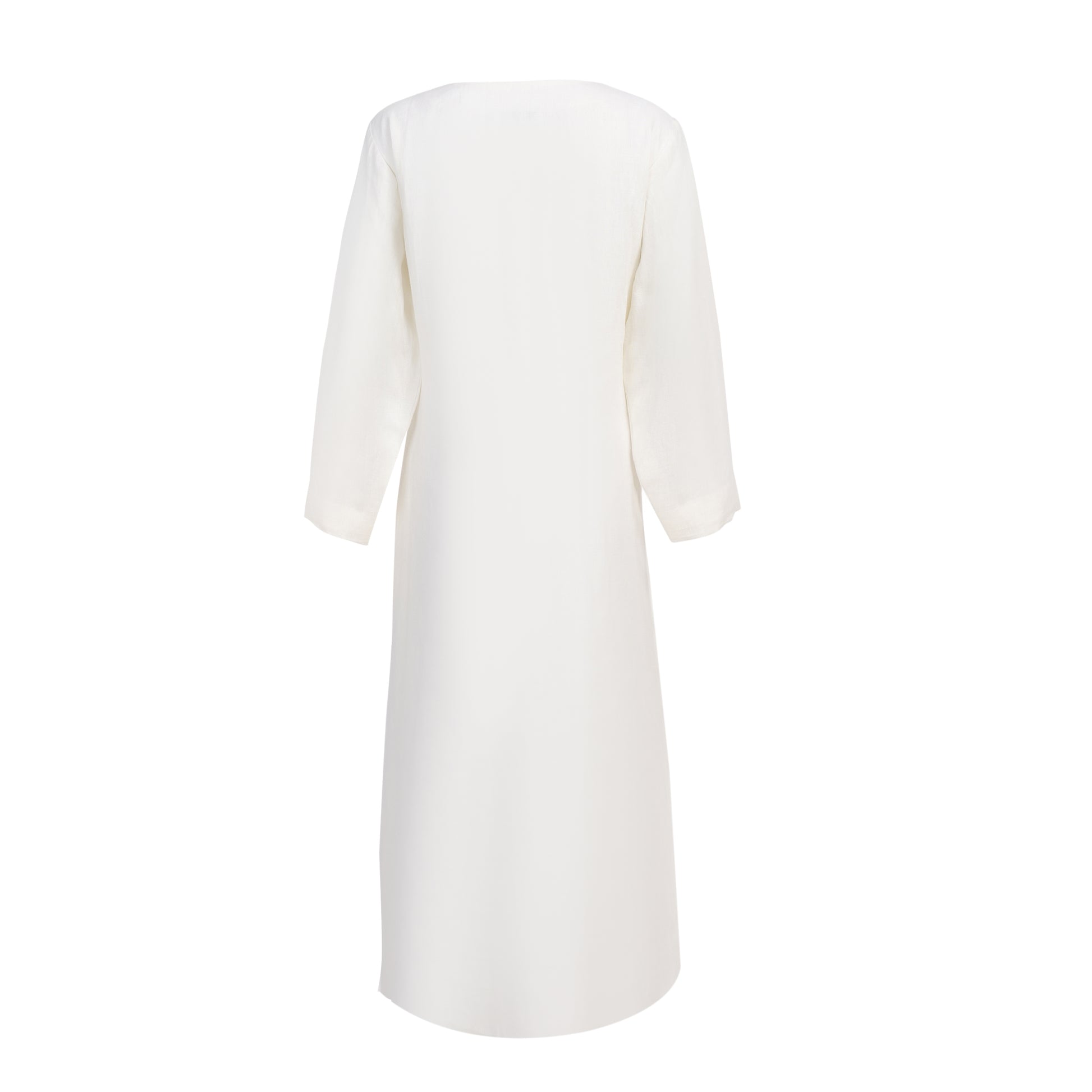 Timeless elegance meets effortless comfort with our White Linen Kaftan with Thread Work. Crafted from premium linen, this airy and breathable piece is adorned with delicate embroidery, making it a perfect choice for both casual and refined occasions. Features: 1. Pure Linen Fabric – Lightweight, breathable, and soft on the skin. 2. Intricate Thread Embroidery – Elevates the look with fine handcrafted details. 3. Relaxed & Flowing Silhouette – Ensures all-day ease and sophistication. 4. Versatile Styling – Perfect for vacations, brunches, or lounging in style. 5. Timeless White Hue – A wardrobe staple that exudes grace and charm. 6. One Size Fits Most – Designed for a universally flattering fit.