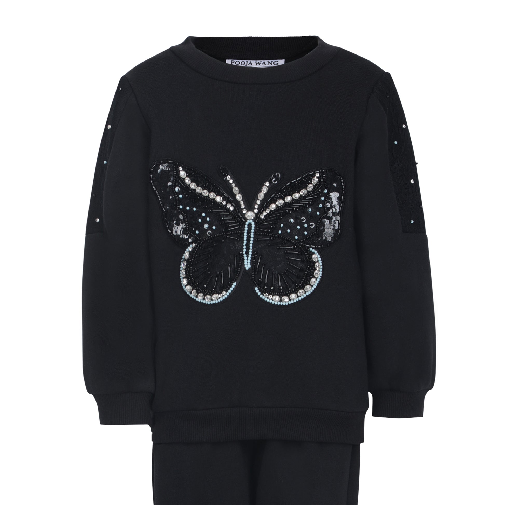 Grace meets comfort in our Midnight Flutter Hand-Embroidered Track-Sets, crafted from plush black fleece and adorned with exquisite butterfly embroidery. This cozy yet stylish set is designed for little fashionistas who love a blend of elegance and playfulness. Key Features: 1. Premium Black Fleece – Ultra-soft, warm, and perfect for all-day comfort. 2. Handcrafted Butterfly Embroidery – Intricate detailing adds a dreamy, whimsical charm. 3. Zipper-Style Jacket – Effortless wear with a sleek, stylish finish. 4. Versatile & Chic – Ideal for casual outings, special occasions, or cozy winter days. 5. Timeless Elegance – A classic black ensemble with delicate accents for a standout look.