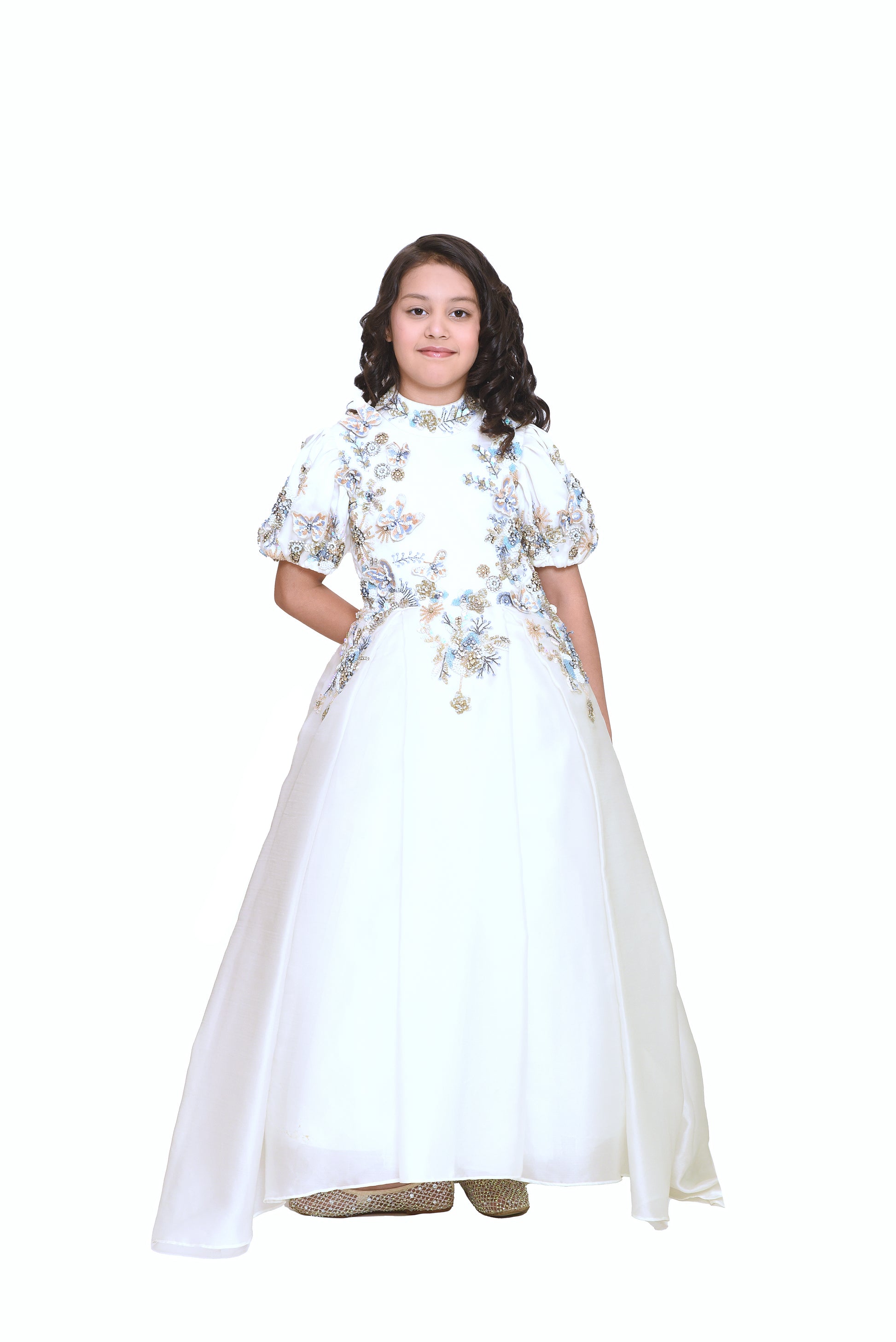 A vision of elegance and sparkle, the Zori Crystal Gown is designed to make your little one shine like a star. Crafted from luxurious organza tissue, this gown features a graceful, flowy silhouette that moves like a dream. Embellished with shimmering Zori crystals, it adds the perfect touch of glamour, making it ideal for special occasions. Key Features: 1. Premium Organza Tissue Fabric: Lightweight, sheer, and effortlessly elegant. 2. Zori Crystal Embellishments: Delicate sparkle for a magical look. 3. Flowy & Dreamy Silhouette: Designed for twirling and graceful movement. 4. Soft & Comfortable Fit: Ensures ease of wear for all-day celebrations. 5. Perfect for Special Occasions: Ideal for birthdays, weddings, and festive events.
